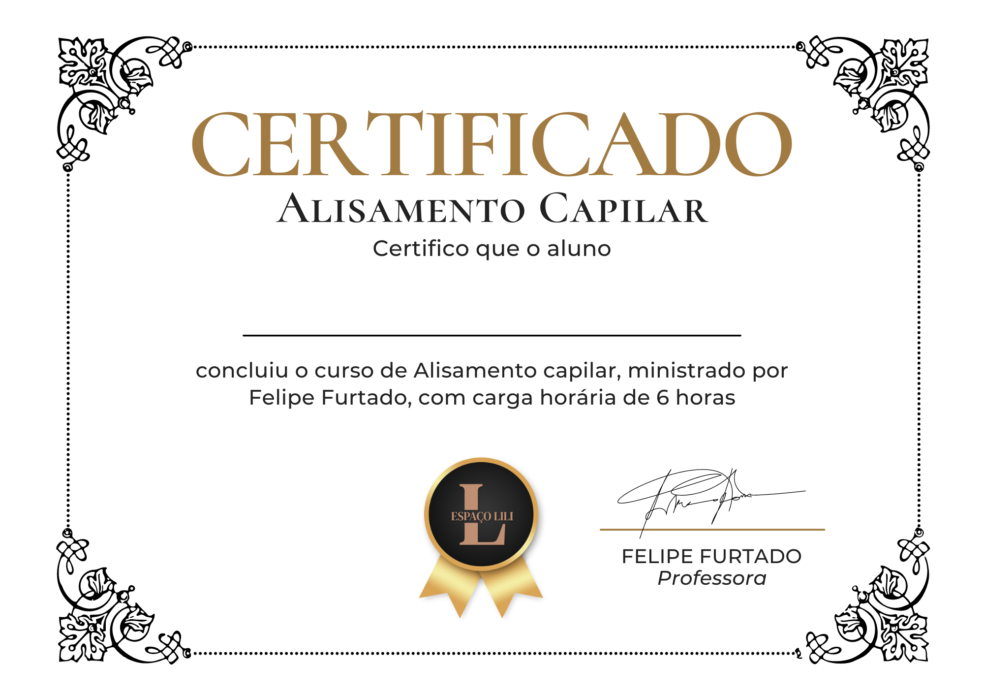 Ao concluir o nosso curso de progressiva online, você receberá um certificado reconhecido, comprovando sua expertise e habilidades adquiridas. Este certificado não apenas valida seu conhecimento, mas também abre portas para inúmeras oportunidades no mercado de beleza, permitindo que você se destaque entre os profissionais e conquiste a confiança de seus clientes.