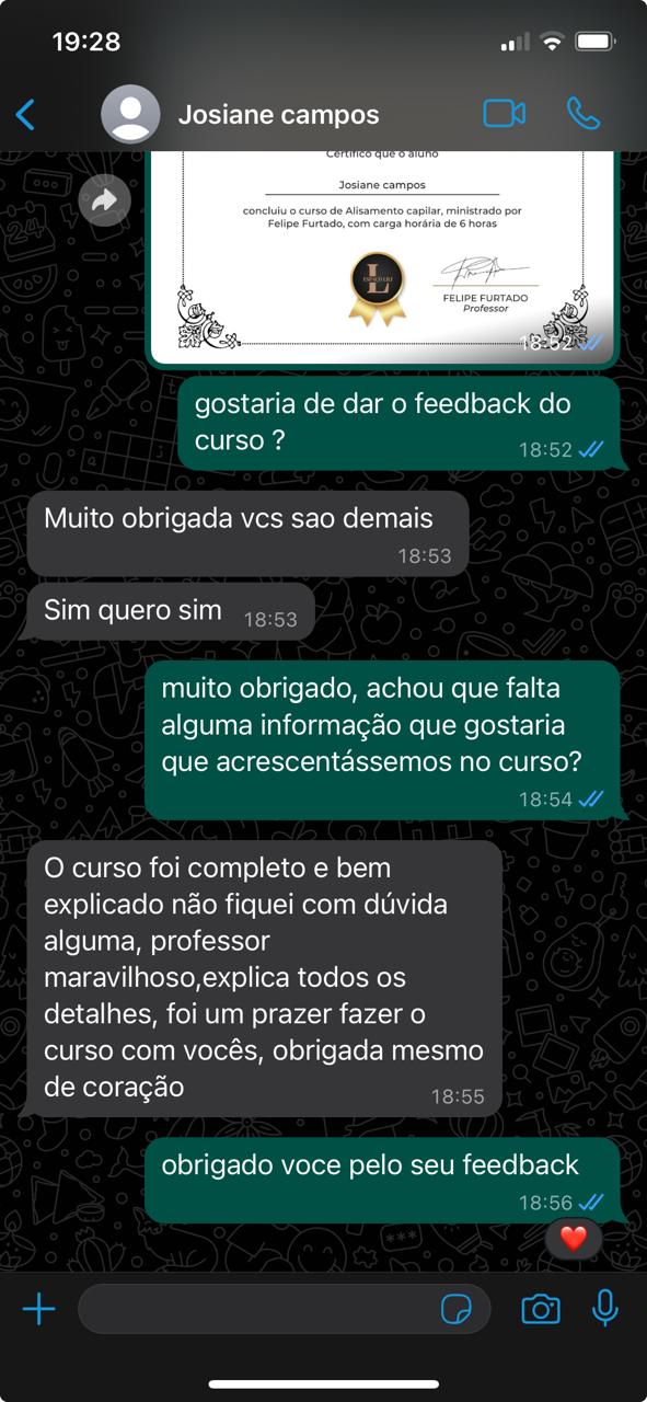 Durante todo o curso, você contará com suporte especializado para tirar dúvidas e receber orientações. Nosso objetivo é garantir que você se sinta confiante e preparado para aplicar as técnicas aprendidas em seu salão.