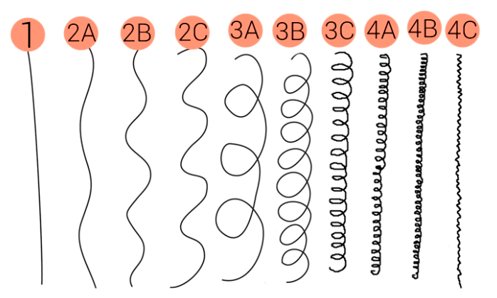 Dentro de cada categoria, ainda há subdivisões (A, B e C), que representam variações na espessura e no padrão de ondas ou cachos.